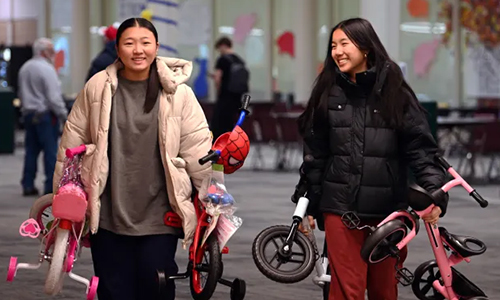 Stevenson’s 41st annual Give-A-Thon continued a decades-long tradition of student-led generosity. Organized by NHS, students raised funds, purchased essentials, and wrapped gifts, baby items, and food for local families. On distribution day, they loaded donations, including dozens of bikes, for community agencies, ultimately supporting more than 300 families and over 1,100 children this holiday season.